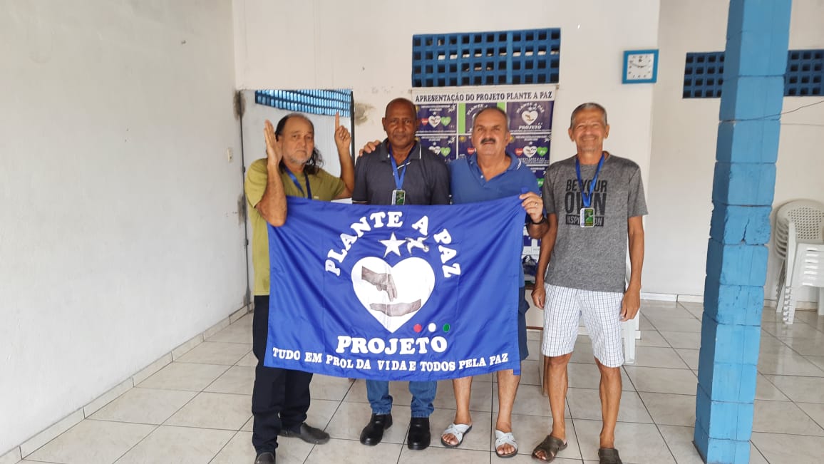 Carlos Fernando, o Agricultor da Paz, reunido em sua humilde residência, na manhã do último sábado, dia 19 de Março de 2022, com os amigos e irmãos de farda, Japiaçu, João Arruda e Joel José, apresentando aos mesmos, os objetivos do Projeto Plante a Paz e da Copa Plante a Paz.